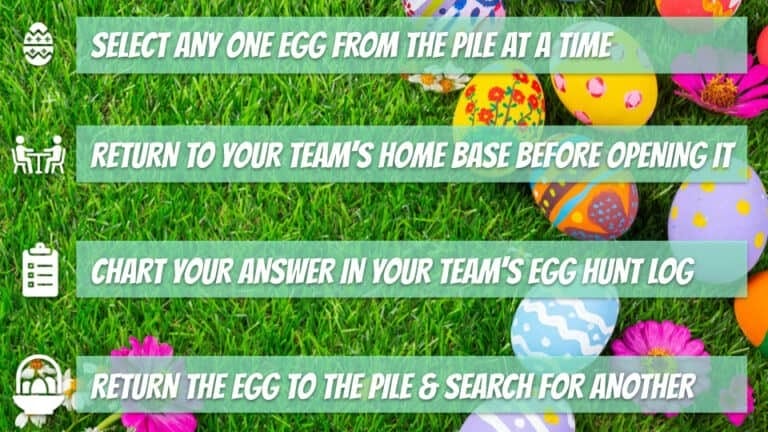 You betcha! If you’re teaching something like literature and poetry, consider providing students with a printed copy of the text, numbering certain items throughout the piece, and then having students solve for the numbered items as they draw numbered prompts from the plastic eggs. The activity is super flexible.