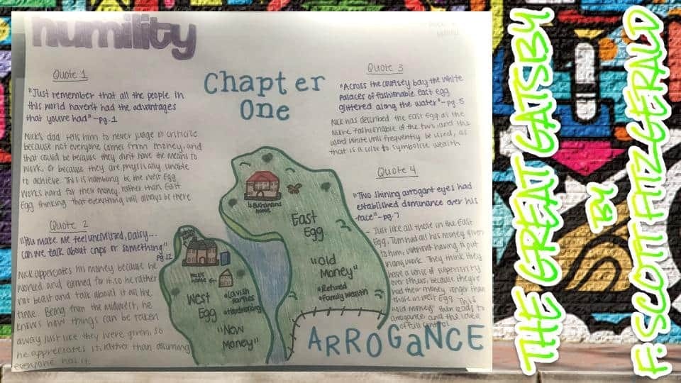- Two giant words that sum up what the student believes to have been the biggest takeaways from the assigned reading. These letters represent those all-important main ideas, so they should be big and bold, and pop out from the rest of the smaller details!